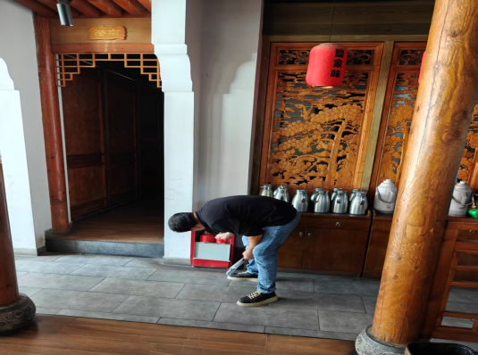 特色民宿与公共空间:对民宿的厨房燃气、应急通道、消防器材逐一核验,在古建风格的民宿大堂,检查人员还特别提醒经营者注意木质装修的防火措施,要求配备防火毯等专用器材。