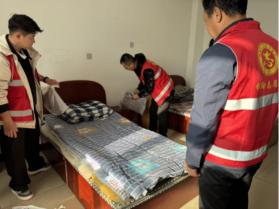 与此同时,另一组志愿者则忙碌于打扫卫生。他们仔细地清扫每一个角落,为老人们创造一个整洁舒适的生活环境。在换床单被褥的过程中,志愿者们更是细心周到,他们轻轻地为老人更换干净的床单被褥,让老人们感受到了家的温馨。