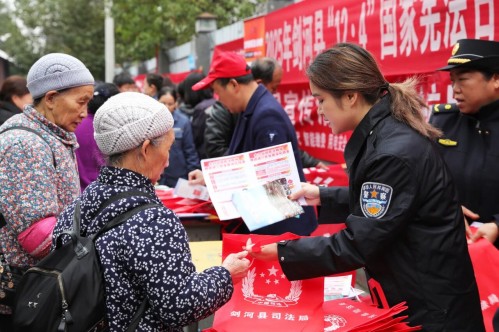 在第十二个国家宪法日来临之际,剑河县委宣传部、县委依法治县办、县司法局联合县直相关部门,利用赶集日人员集中的优势,开展“12·4”国家宪法日宣传活动。