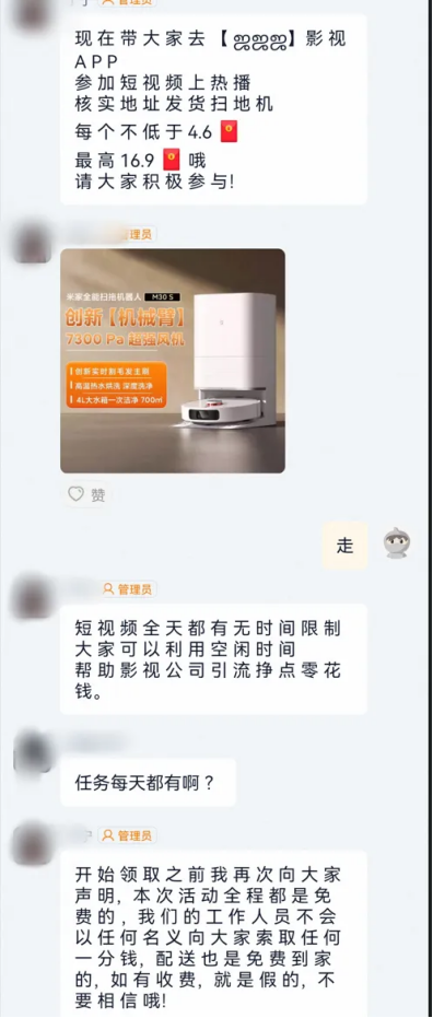 此时的张某逐渐放下戒备,按照客服的指引,在手机上下载了一款APP,又成功领到了60元新人红包。客服表示扫地机器人需要通过完成任务来解锁,届时不仅能赚取任务佣金,拿到扫地机器人,还能额外获得其他奖品。心动不如行动。见奖励如此丰厚,张某便开启了自己的“刷单之旅”。