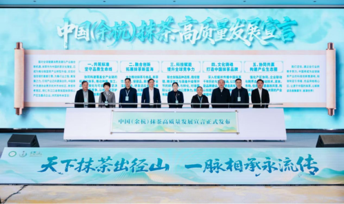 大会期间,中国茶叶流通协会副会长姚静波以及来自全国抹茶重点县域和重点企业的领导嘉宾共同上台,发布《中国(余杭)抹茶高质量发展宣言》。宣言提出以标准化、创新化、国际化为路径,推动中国抹茶从“跟跑”向“并跑”“领跑”跨越,真正让抹茶成为“共富金叶”。