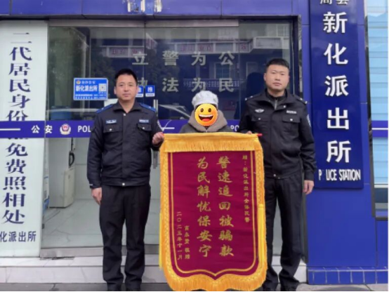近日,一位年过六旬的老人手持一面印有“警速追回被骗款 为民解忧保安宁”字样的锦旗,来到金沙县公安局新化派出所,向民辅警连声道谢:“多谢你们帮忙,不然我这笔看病钱就打水漂了!”