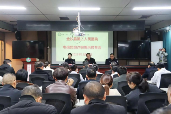 2025年12月18日,金沙县反诈小分队联合金沙县反诈协会、金沙县公安局沙土派出所,走进金沙县第二人民医院,为全体干部职工开展了一场主题鲜明、案例生动的反诈宣传教育活动。此次活动旨在进一步提升医务工作者防范电信网络诈骗的意识和能力,筑牢医疗机构反诈“防火墙”。