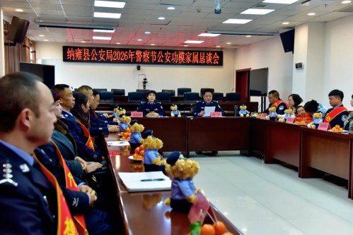 在第六个中国人民警察节即将来临之际,为进一步凝聚警心激励斗志。1月5日,纳雍县公安局组织召开2026年警察节公安功模家属恳谈会。来自全局各警种部门的16名功模民警代表及其家属欢聚一堂,共话家国情怀,共同分享属于“公安大家庭”的荣耀与温暖。