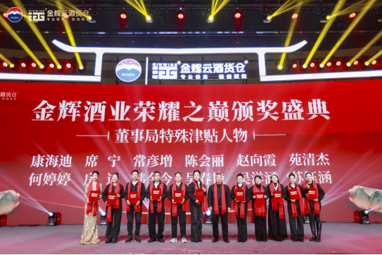 十九年征程如诗,每一笔辉煌的书写,都离不开奋斗者挥洒的汗水与闪耀的智慧。颁奖盛典上,金辉酒业先后颁发了 “时光见证官”、“鼎力支持奖”、“品牌挚友奖”、“同心协力奖”、“品牌传播奖”等。金辉也特别向与企业同行十年以上的员工授予 “十年风雨同舟贡献人物” 称号,并向杰出代表颁发“董事局特殊津贴人物”荣誉。每一项荣誉背后,都是一个动人的故事,一段深厚的信任,一份执着的坚守。他们是金辉发展的根基,更是金辉精神的生动写照。