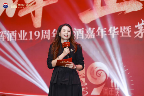 金辉酒业联合创始人、党支部书记王文倩在致辞中深情回顾了企业十九年的发展历程。她强调,金辉始终以“只卖真酒”的朴素承诺为初心,并感恩于内外部“两份情”——内部员工同心共济的战友之情,与客户伙伴信任支持的将心比心之情。她将金辉定义为一座连接匠心产品、合作伙伴与消费者信赖的“桥梁”,并展望未来,企业将继续担当“价值放大器”与“情感连接器”,与各方携手共赴新征程。