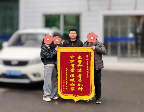 1月12日上午,市民李某夫妇专程来到黔西市公安局莲城派出所,将一面印有“出警神速寻子如神 守护有爱温暖如家”的锦旗送到民警手中,感谢派出所快速帮助找回走失的孩子。