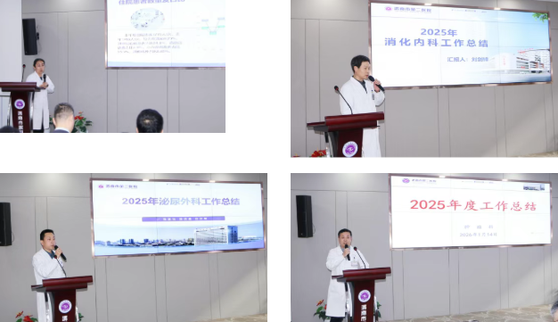 会议期间,各科室负责人通过PPT形式进行述职述廉汇报。大家围绕党风廉政、医疗技术、业务发展、人才培养、科室管理等多个方面,以详实的数据、鲜活的案例,系统梳理了一年来的工作成效与亮点,客观总结成绩,坦诚剖析不足,并对2026年工作提出了清晰的规划与展望。