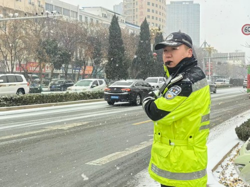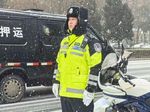 当暴雪如帘幕般席卷商丘市区,街巷瞬间被皑皑白雪覆盖,路面结冰如镜,早高峰的车流在冰雪中寸步难行。危急时刻,商丘交警铁骑大队闻雪而动、以雪为令,铁骑队员驾驭警用摩托逆势出征,用两轮铁骑劈开漫天风雪,为群众筑起坚不可摧的出行安全防线,让那抹亮眼的“荧光绿”,成为暴雪中最安心的底色。以雪为令,铁骑全员火速集结。大队第一时间启动恶劣天气应急预案,创新采用“定点屯兵+动态巡逻”的作战模式,将城区精准划分为6个责任网格,在神火大道、文化路、凯旋路等重点路口路段重兵布防、坚守值守。风雪之中,荧光绿的身影穿梭不息,闪烁的警灯划破沉沉雪幕,化作城市里最醒目的安全标识。队员们顶着刺骨的寒风,任凭双手冻得通红,依旧一遍遍挥动着指挥手势疏导车流,通过喊话器反复叮嘱过往驾驶员:“降速、控距、亮尾”。那些在冰雪里疾驰的铁骑身影,早已定格成商丘冬日里最动人的“雪警”画卷,无声诠释着“人民交警为人民”的庄严承诺。(张成华 余方义)