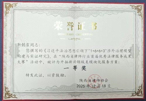 靳懿霏律师执业十余年,专注涉外法律服务、企业模型治理体系建设与重大项目风险防控,始终坚持党建与专业深度融合。作为西安市律师协会先进制造业与新能源法律专业委员会主任,履职期间带领团队深入产业链一线开展律企互促互学调研实践;近期受邀加入“西安十五五发展城市赋能工作组”,参与重点产业法律保障机制设计,将模块化治理思路用于城市高质量发展的智力支持。此次获奖,既是对其个人专业能力与实务成果的充分肯定,也体现了行业对其在涉外法治、新兴领域服务模式探索方面的一致认可。