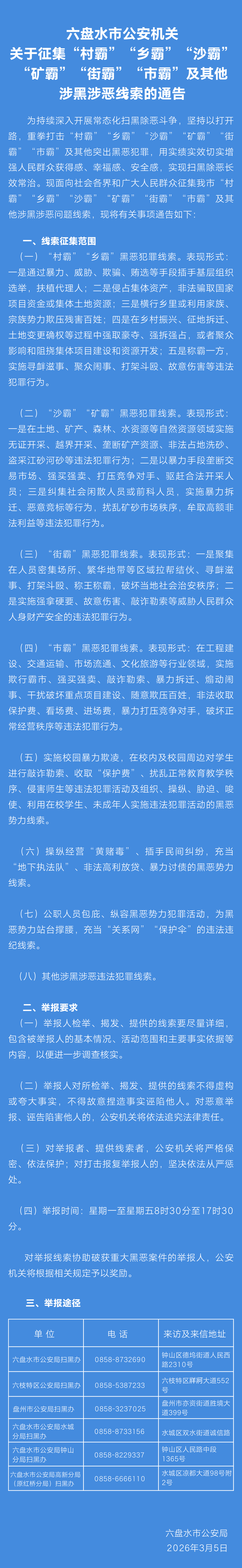 六盘水市公安机关关于征集“村霸”“乡霸”“