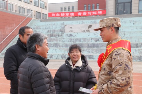 近日,山东省东阿县举行2026年春季新兵入伍欢送仪式。欢送现场,父母们将一份份亲手写下的寄语送到新兵手中,一句句朴实叮嘱饱含深情与期盼。其中一位新兵妈妈深情嘱托:“到部队好好干,不用挂着家里。”简单话语饱含牵挂与支持,温暖人心,催人奋进。新兵们将带着家人殷切期盼,逐梦军营、苦练本领,在军营书写属于自己的青春荣光。(房永志 王伟)