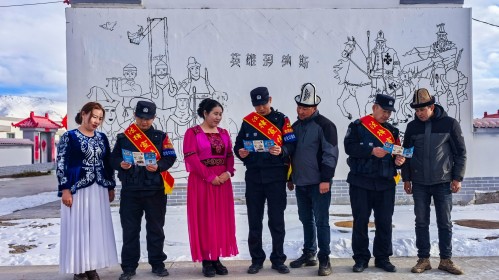 近日,新疆克州边境管理支队布仑口边境派出民警顶风踏雪深入高原牧区、边境村落及农牧民家中,开展“法治宣传进万家”活动,将法律知识送到群众家门口,切实打通高原普法“最后一公里”。