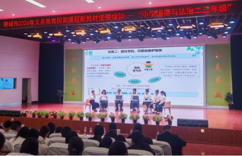3月26日,聊城市2026年义务教育国家课程小学道德与法治新教材使用培训活动在东昌府区举行。在培训会上,东关民族小学夏桂文老师进行了教学展示活动,受到了领导和专家的一致好评。