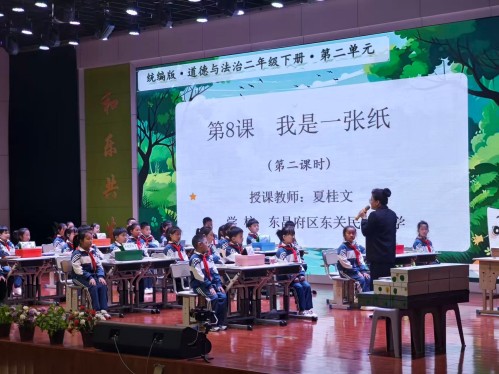 培训中,东昌府区道德与法治教研团队围绕二年级下册第二单元开展整体教学设计解析。课堂实践展示环节,东关民族小学教师夏桂文老师紧扣新教材理念,结合学生认知特点,精心设计教学环节,充分展现了新教材落地课堂的实践样态,为全体参会教师提供了极具参考价值的教学范例。